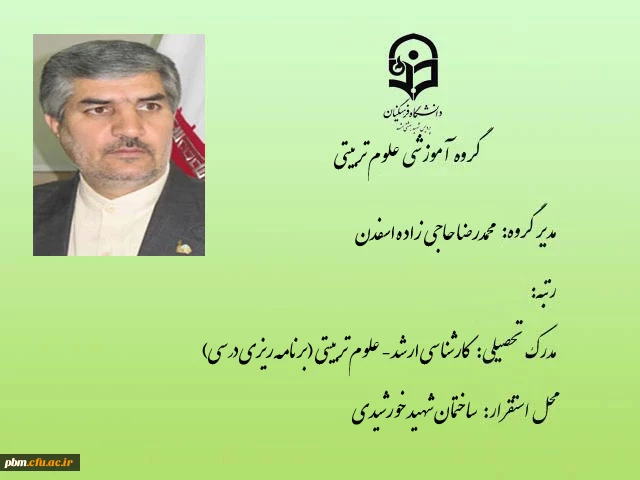| محمدرضا | حاجی زاده اسفدن | هیأت علمی | مربی | فوق لیسانس | علوم تربیتی | رزومه | |