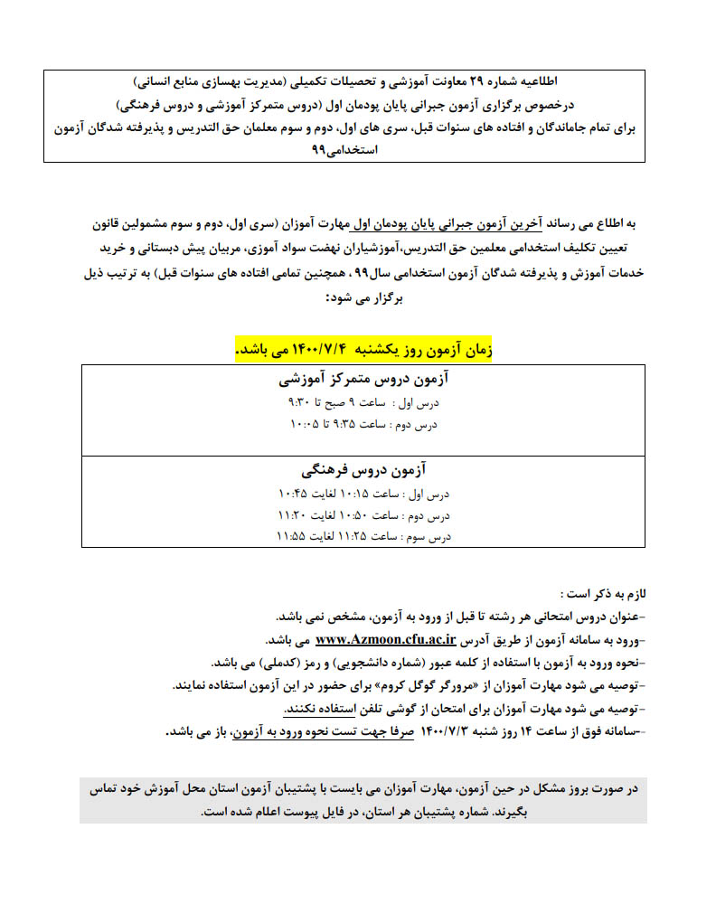 اطلاعیه شماره 29 معاونت آموزشی دانشگاه فرهنگیان