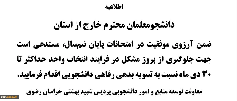 اطلاعیه مهم معاونت توسعه منابع و امور دانشجویی