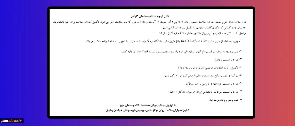امتیاز دهید : اطلاعیه کانون همیاران سلامت روان مرکز مشاوره پردیس شهید بهشتی خراسان رضوی چهارشنبه 27 دی 1396 ساعت 9:11
