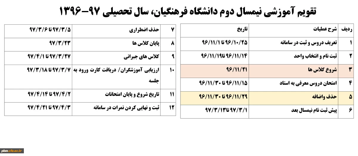 تقویم آموزشی نیم سال دوم دانشگاه فرهنگیان