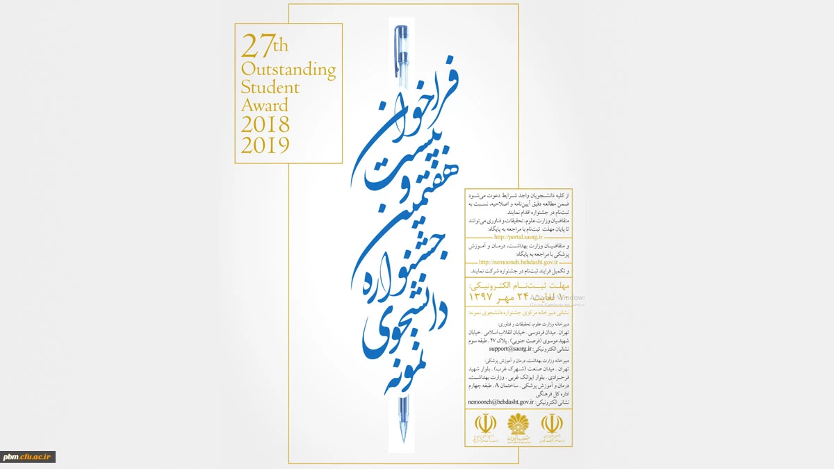 امتیاز دهید : فراخوان بیست و هفتمین جشنواره انتخاب و معرفی دانشجوی نمونه یکشنبه 22 مهر 1397 ساعت 12:47