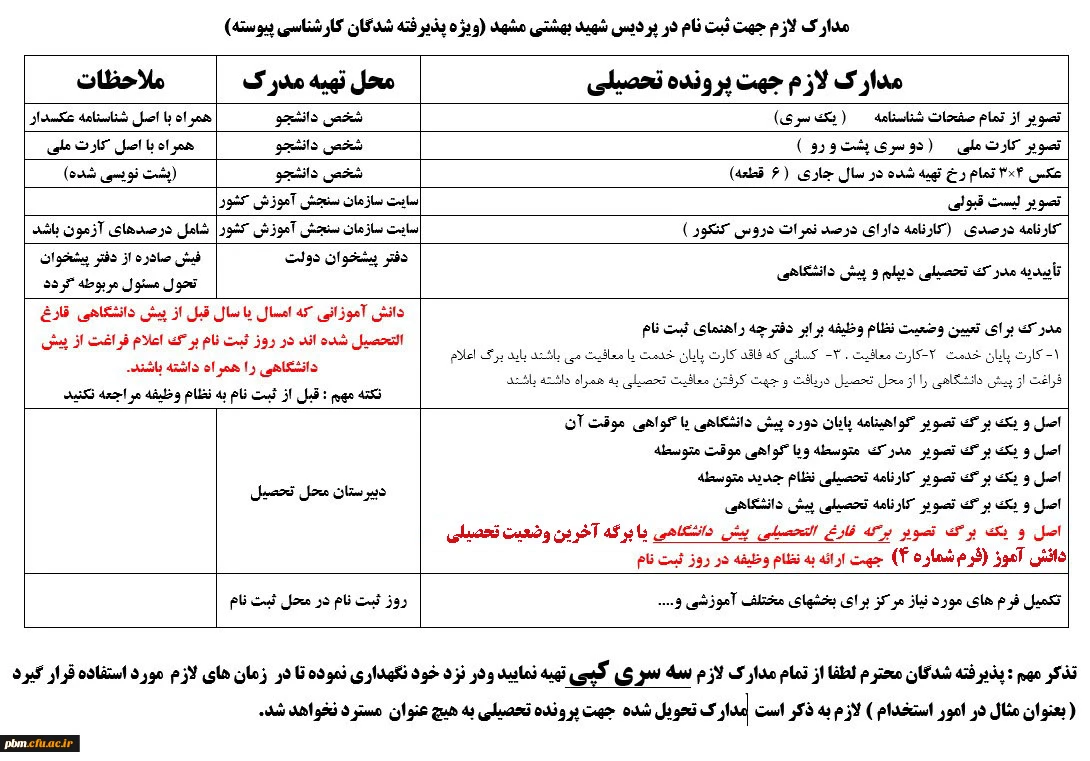 مدارک لازم جهت ثبت نام دانشجویان جدیدالورود کد11