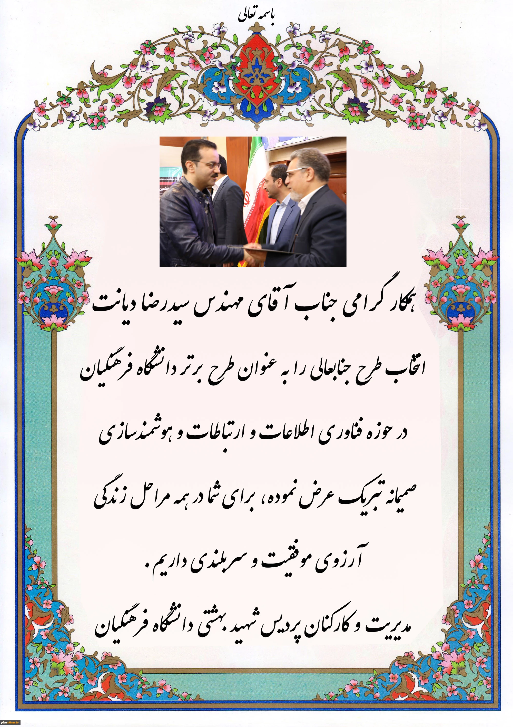 تبریک به آقای دیانت