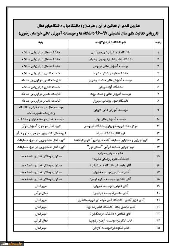 امتیاز دهید : انتخاب پردیس شهید بهشتی مشهد به عنوان دانشگاه فعال در حوزه قرآن و عترت یکشنبه 16 دی 1397 ساعت 14:05