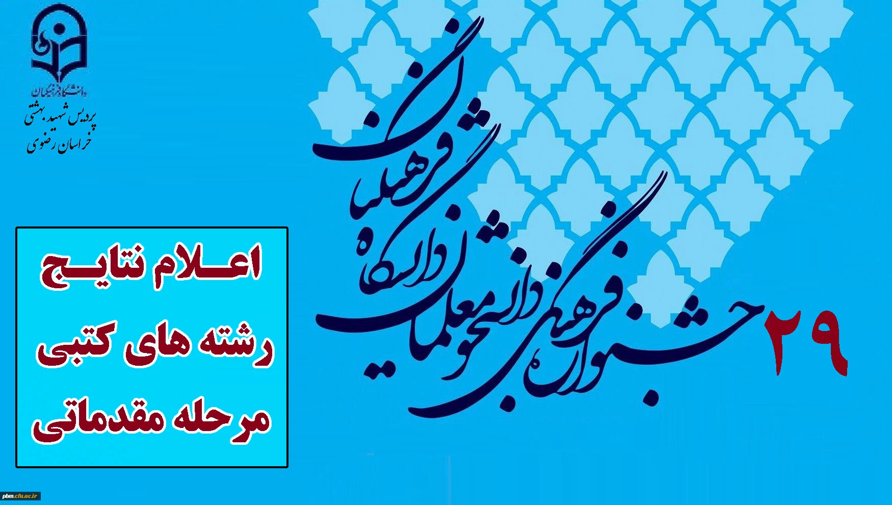 اعلام نتایج مرحله مقدماتی رشته های کتبی بیست و نهمین جشنواره فرهنگی اجتماعی پردیس شهید بهشتی