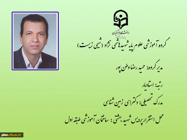 مدیر گروه آموزشی علوم پایه شهیدهاشمی نژاد (شیمی زیست)