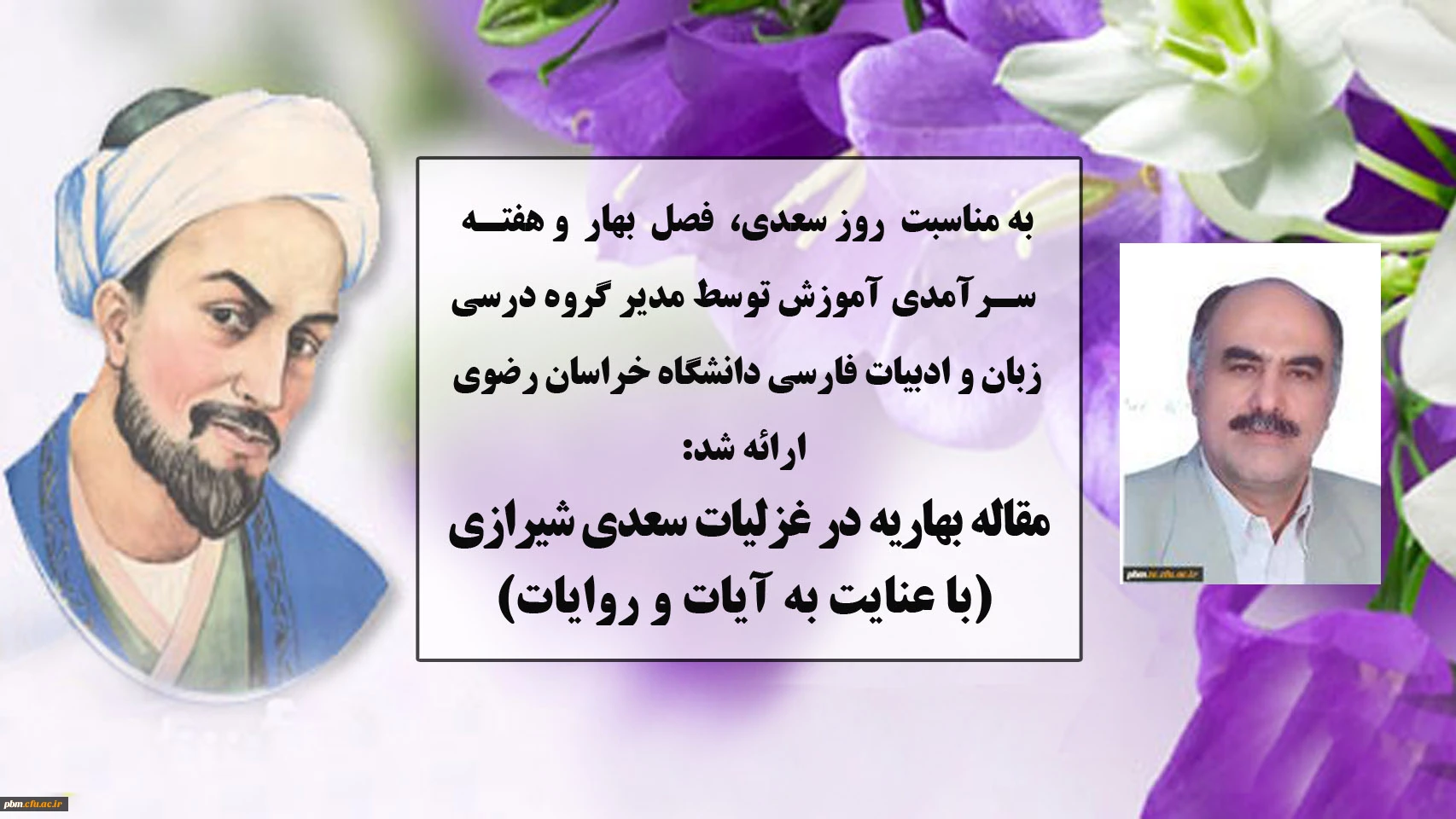 مطلب مدیرگروه زبان و ادبیات فارسی دانشگاه فرهنگیان خراسان رضوی به مناسبت هفته سرآمدی آموزش و به بهانه روز بزرگداشت سعدی و فصل بهار