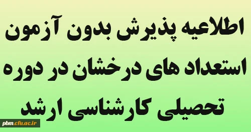 امتیاز دهید : اطلاعیه پذیرش بدون آزمون استعداد های درخشان در دوره تحصیلی کارشناسی ارشد سهشنبه 13 اسفند 1398 ساعت 14:21