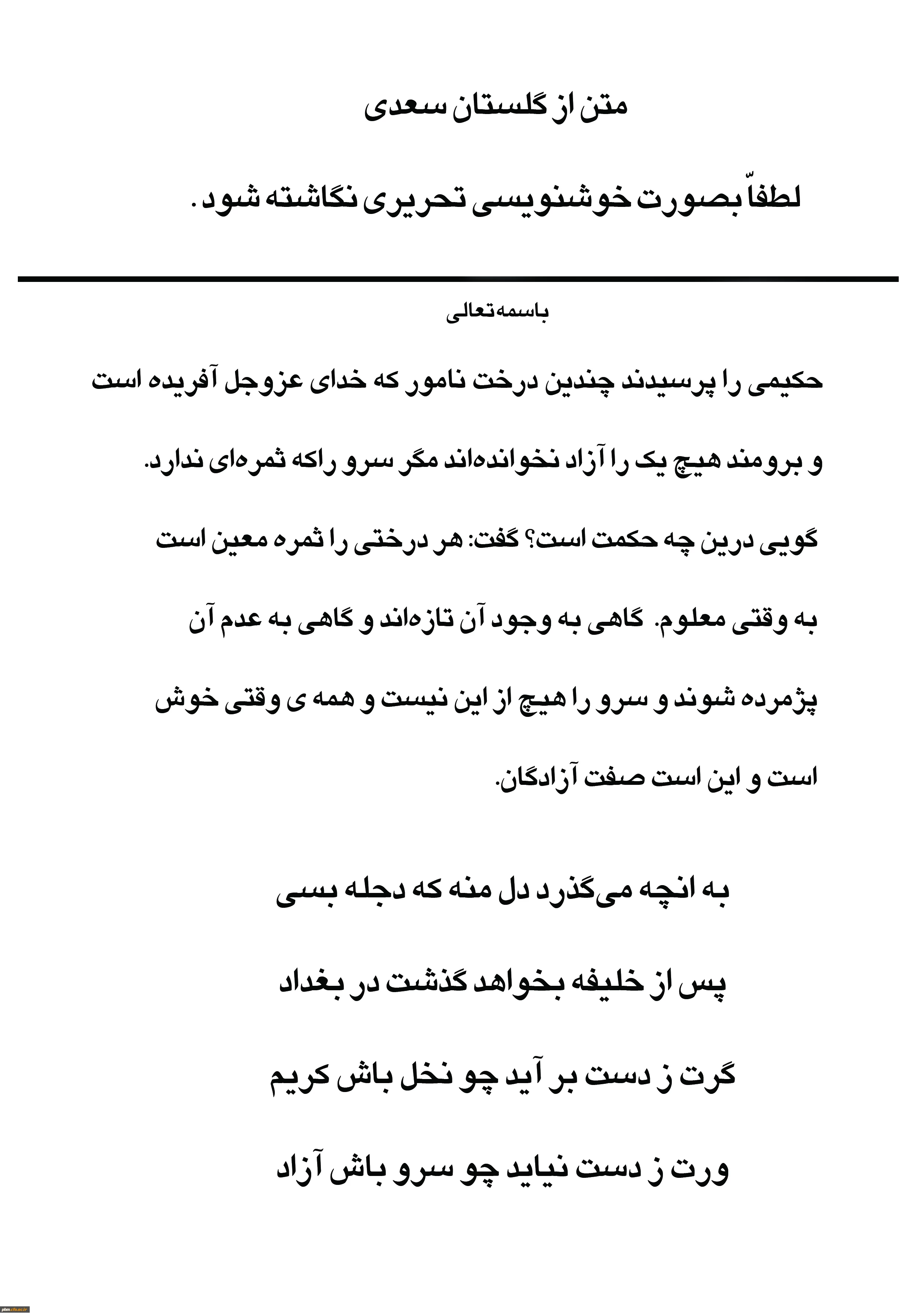 متن مسابقه خوشنویسی تحریری مرحله استانی