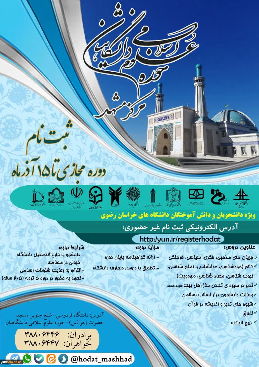 اطلاعیه ثبت نام حوزه علوم اسلامی دانشجویان