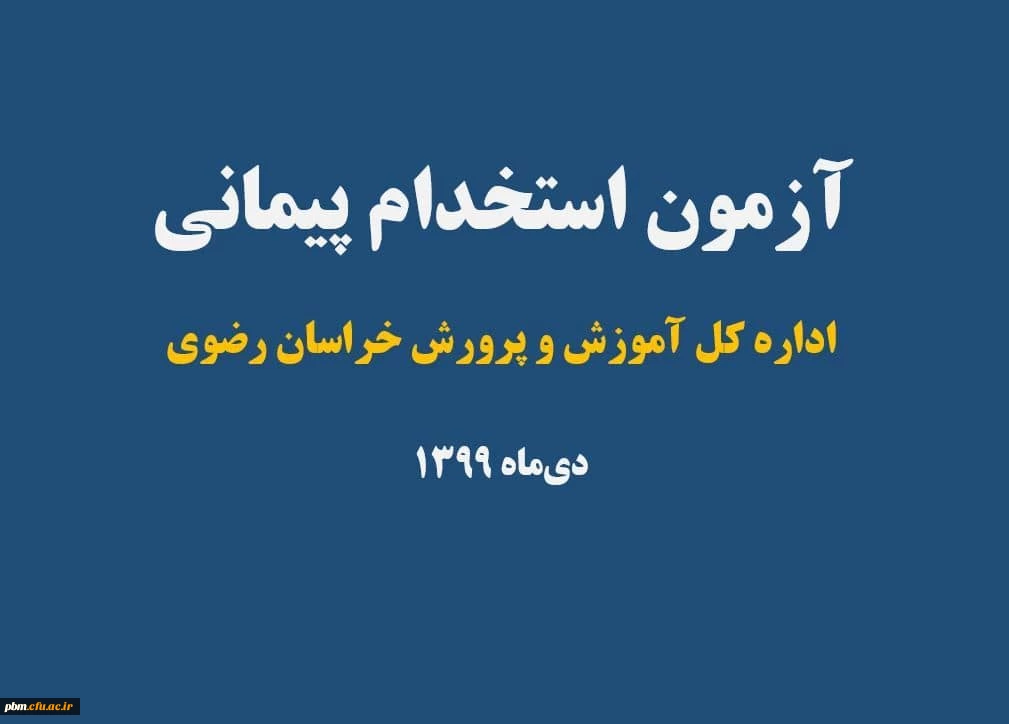 امتیاز دهید : قابل توجه پذیرفته شدگان مرحله اول آزمون استخدام پیمانی آموزش و پرورش سال 99 پنجشنبه 16 بهمن 1399 ساعت 23:38
