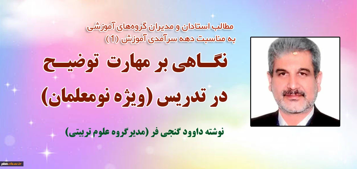امتیاز دهید : مطلب مدیر گروه علوم تربیتی دانشگاه فرهنگیان خراسان رضوی به مناسبت دهه سرآمدی آموزش شنبه 11 اردیبهشت 1400 ساعت 12:10