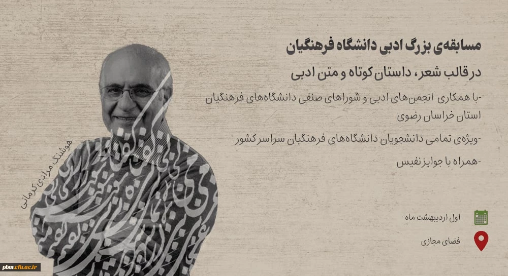 امتیاز دهید : اعلام نتایج مسابقه ادبی کشوری انجمن علمی ادبیات و کانون شعر و ادب پردیس شهید بهشتی یکشنبه 23 خرداد 1400 ساعت 9:49