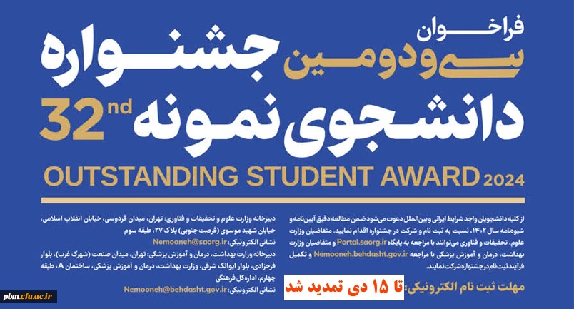 تمدید مـــهلت ثبت نام در سی و دومین جشنواره دانشجوی نمونه