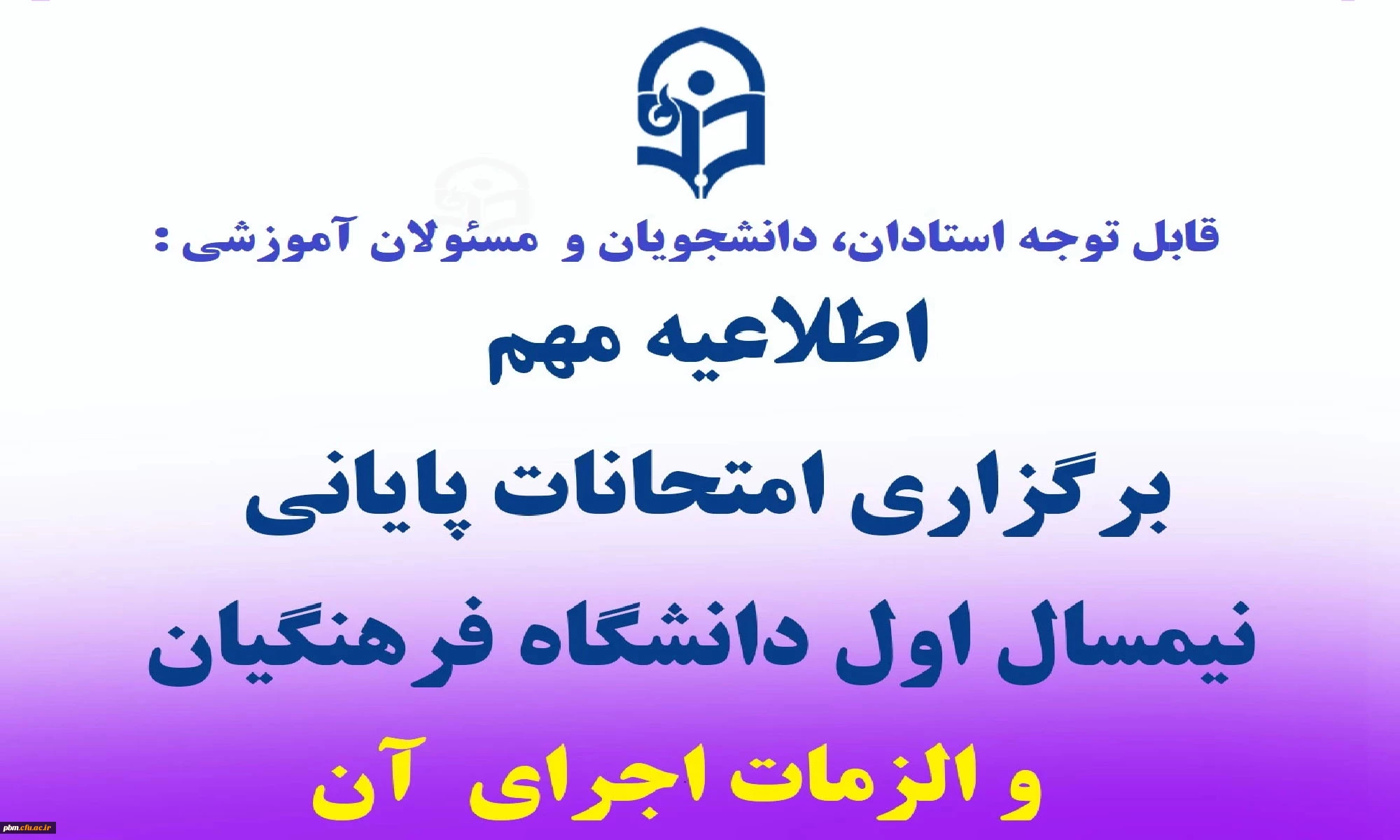 امتیاز دهید : اطلاعیه برگزاری امتحانات پایانی نیمسال اول دانشگاه فرهنگیان و الزمات اجرای آن دوشنبه 29 دی 1404 ساعت 15:16