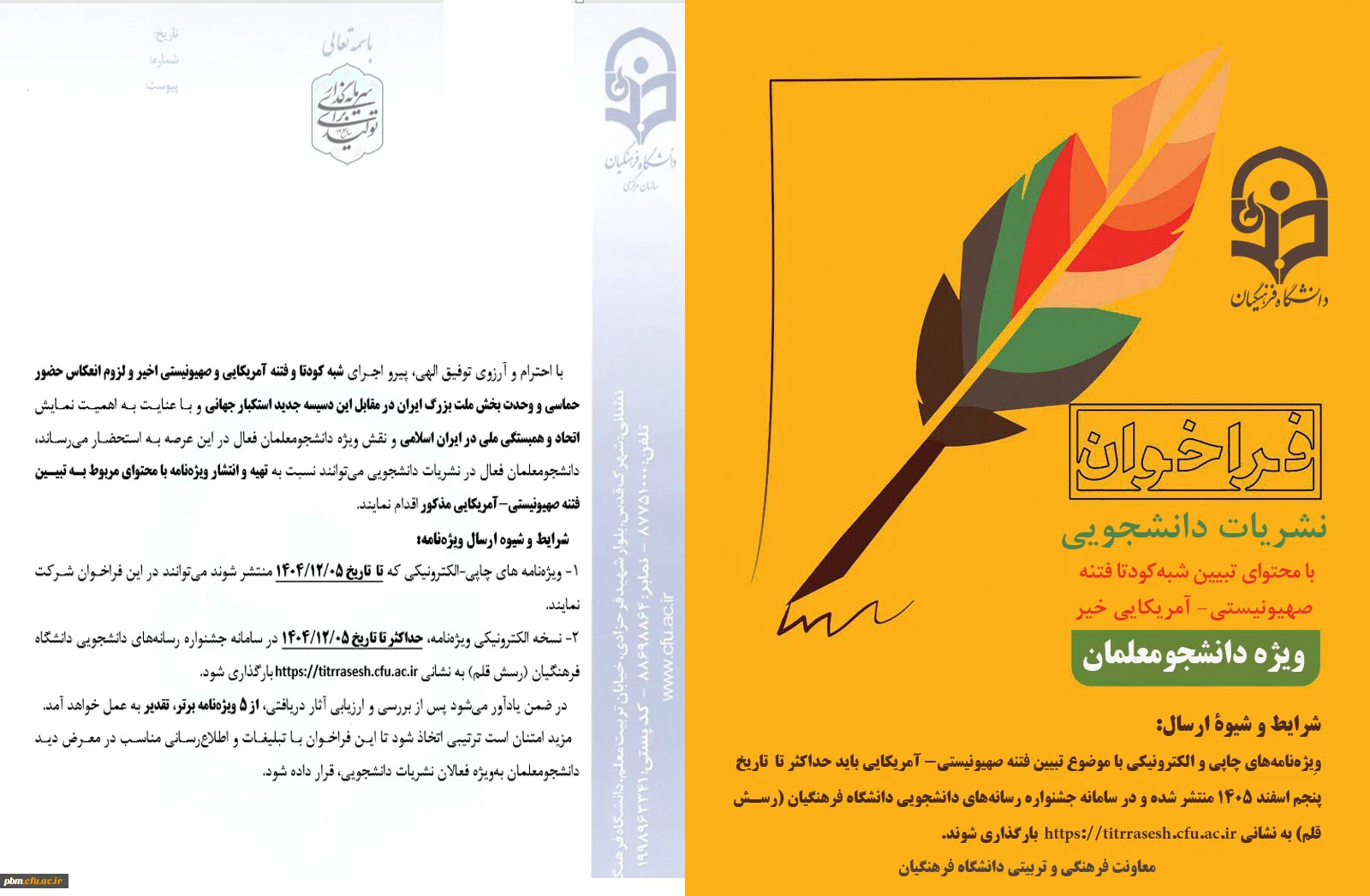 امتیاز دهید : فراخوان ویژه نامه های دانشجویی با محوریت تبیین فتنه اخیر استکبار جهانی یکشنبه 26 بهمن 1404 ساعت 9:18
